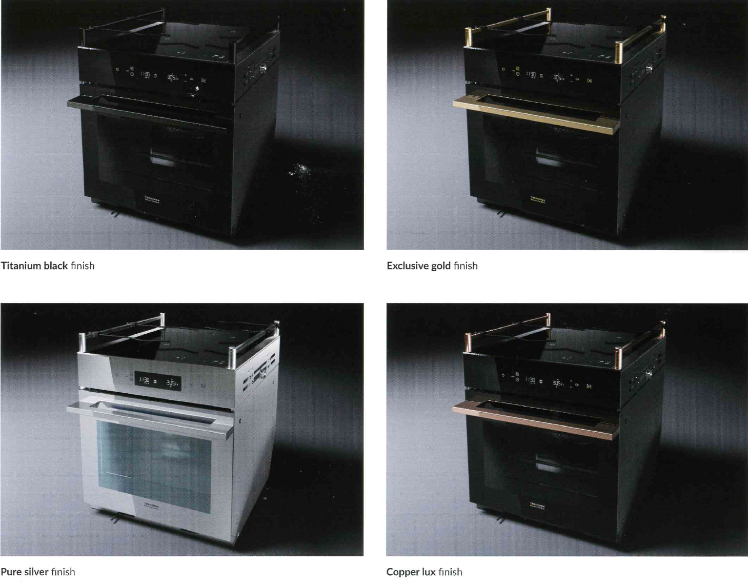 Viimeistelyt: Mukautetut viimeistelyt sisältävät Exclusive Gold, Titanium Black, Copper Lux ja Pure Silver.