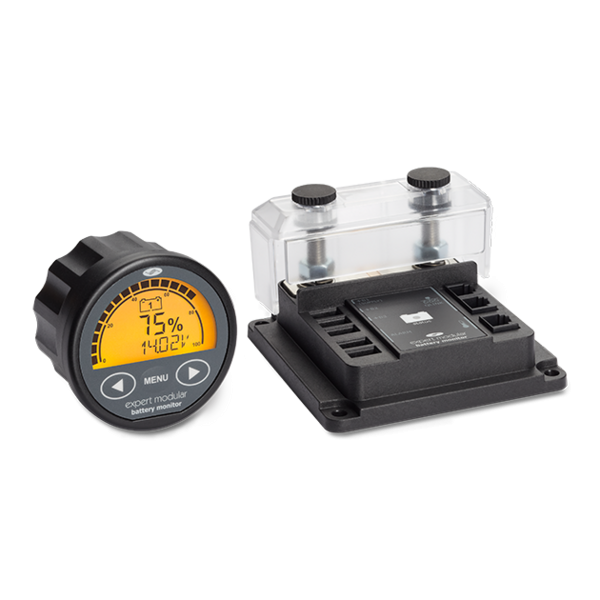 TBS Expert Modular akkumonitori pystyy tarjoamaan laajimman tuen erilaisille akuille ominaisuuksille ja akkupankeille. Sen shuntti on ensinnäkin sovitettu TBS:n DC modular järjestelmän jalkakuvioon ja saat asennettua sen helposti erilaisiin kohteisiin ja järjestelmiin. Se tukee maksimissaan kolmea erillistä akkupankkia, ja erilaisia akkutyyppejä, kuten esimerkiksi LiFePO4 akkuja. Expert Modular shuntti on täysin digitaalinen ja kommunikointi mittari-instrumentin ja shuntin välillä tapahtuu häiriöttömästi ja digitaalisesti. Voit kytkeä myös suoraan shunttiin Quick link adapterin, esimerkiksi bluetoothilla. TBS DC-modular tukee maksimissaan kolmea erillistä akkupankkia. Sisäänmenojännite voi ollla maksimissaan 70 volttia, jolloin esimerkiksi 48 voltin akuston monitorointi on helppoa. Shuntti kestää maksimissaan peräti 600 ampeerin virran ja 500 ampeerin jatkuvan virran, joka takaa keston suurenkin kulutuksen teollisissa varavoimajärjestelmissä. Shuntissa on kaksi vapaasti ohjelmoitavaa relettä, jolla voidaan ohjata hälytyksiä, lautureita ja varavoimageneraattoreita yms. Tämä akkumonitori on yksinkertaisesta ulkonäöstään huolimatta yksi markkinoiden monipuolisimmista akkumonitoreista.