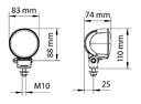 Kaksi erilaista optiikkaa, pistevalo 5 asteen valokulmalla ja kirkkaalla lasilla tai hajavalo 12 asteen valokulmalla ja rasteroidulla lasilla. Käyttöjännite 9-33 V, virrankulutus 30 W. Valkoinen, hajavalo.