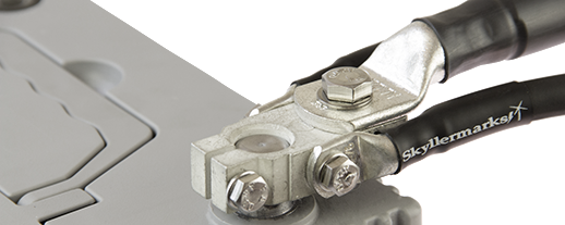 Saadakseen parhaan mahdollisen liitännän tulee virtakaapeleihin asentaa kunnolliset puristettavat putkikaapelikengät. Jotta nämä voitaisiin kytkeä akkuihin, on Skyllermarks suunnitellut oman erityisen akkukengän. Materiaalina on tinattu messinki. Kaikki kontaktipinnat ovat jyrsitty sileiksi parhaan mahdollisen kontaktin saamiseksi ja siinä on tilaa jopa neljälle suurelle kaapelikengälle ilman että niitä tarvitsee niputtaa päällekkäin.