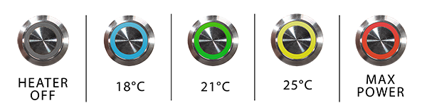 AUTOTERM Travel Box 2.0 -laitetta voidaan käyttää yhdellä painikkeella, joka sijaitsee lämmittimen päällä. Ilman ulkoista lämpötila-anturia käytettäessä lämmitin toimii 4 tehotasolla, mutta sen avulla on mahdollista asettaa 3 eri tavoitelämpötilaa.