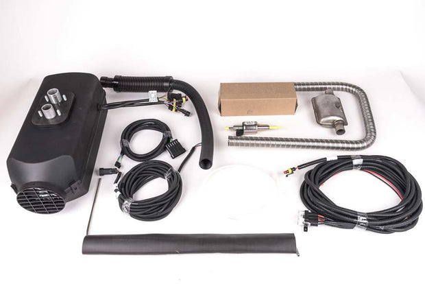 Lämmittimen tehdaspakkaus, jossa mukana lämmittimen lisäksi mm. johtosarja, polttoainepumppu, poltoainelinja ja pientarvikkeet. Kaikki, jolla lämmitin saadaan toimimaan, poislukien ohjaustaulu (Erikseen myytävänä kaksi eri vaihtoehtoa) ja asennuspaikkakohtaiset tarvikkeet.