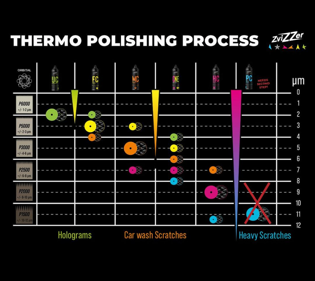 THERMO-teknologialla valmistetut kiillotustyynyt eivät pehmene tai menetä leikkausominaisuuksiaan käytön aikana, joten maalinaarmut poistetaan paljon nopeammin ja tehokkaammin.